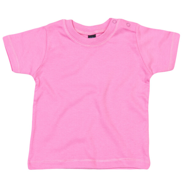 Baby pure cotton crew neck T in soft, comfortable stretchy fabric with poppers at shoulder.