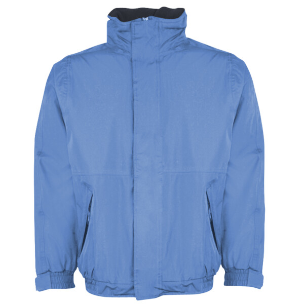 Waterproof Hydrafort polyester fabric. Windproof fabric. Anti-pill symmetry fleece reverse with taped seams. Concealed hood. Studded stormflap and elasticated cuffs. 2 zipeed lower pockets with press studs at hem for embroidery access. Also available in kids'