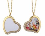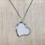 Add a touch of sparkle to your look with our Heart Necklace, featuring an area to personalize with your image or design. Surrounded by shimmering faux crystals along one side, this elegant piece is available in silver or gold finishes, making it a stunning and sentimental accessory. Perfect as a gift for someone special or a meaningful keepsake for yourself, this necklace combines timeless style with a personal touch to celebrate cherished memories or unique designs.